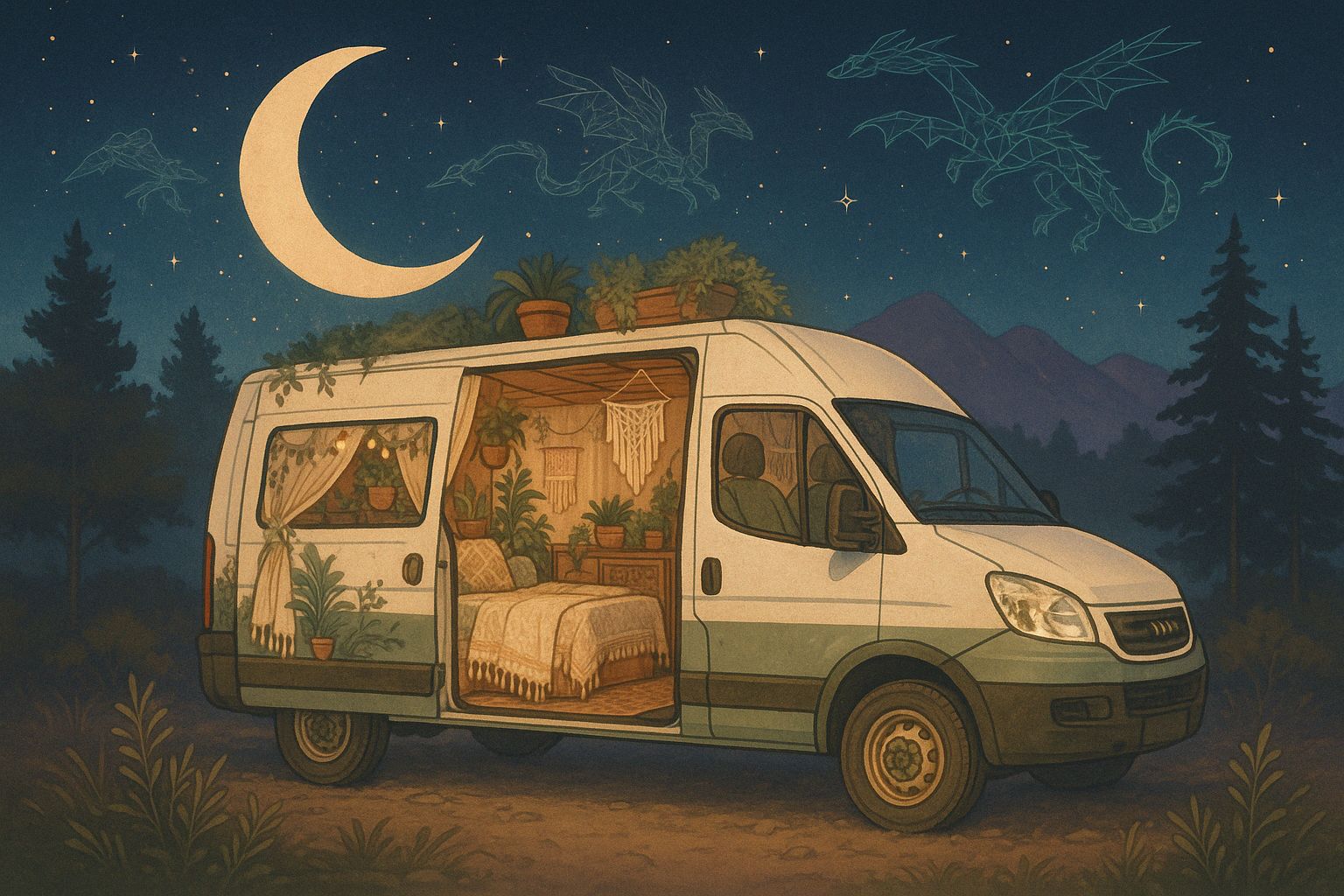 « Nomade », parce que le mouvement fait partie de nous. Parce que la vie en van, loin de n’ĂȘtre qu’un dĂ©cor, est devenue une philosophie, un chemin de dĂ©pouillement joyeux, de lenteur, d’aventure en famille.